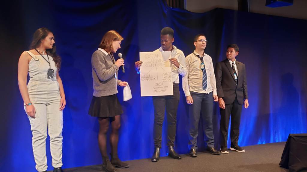 Most of the morning was spent solidifying our projects and learning how to pitch project ideas in one minute. Yes, you read correctly we had one minute to sell the judges on our idea and best believe Ron was there to ensure everyone stuck to the time limit. It seemed like a nerve-racking task however, each group braced the stage and presented some amazing ideas tackling issues of ocean pollution, plastics, sustainable fisheries, coral reef restoration, ocean awareness and much more. In just one day 20 groups of 100 young people came up with some phenomenal ideas to tackle some of our oceans’ most pressing problems, highlighting the amazing power of young people across the globe. It really makes you wonder, if we could do that in one day, why are things not changing? Why are governments not doing more? What is the real issue?