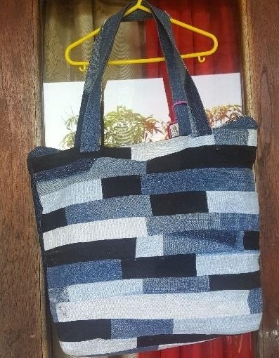 Shenece has extended her portfolio and now makes tote bags for commercial sale. She initially had the idea to construct these bags out of the desire of wanting to sell her organic produce at farmers markets without using plastic bags. She took to the sewing machine and started using old denim such as jeans to make her bags which meant that people were able to attend the market and purchase her produce without worrying about the environmental consequence of single use plastic bags. Evolving from denim, she then started using old t-shirts to cut and make yarn which would be used to make the tote bags.Ā