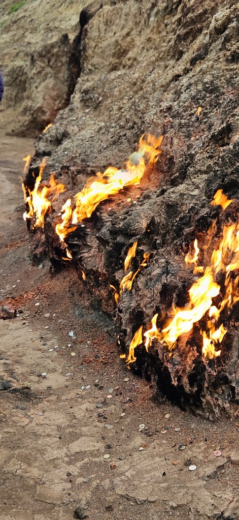 Beyond the conference, Baku itself was a revelation. As a Trini, I’ll admit, that we’re (especially me) pretty critical when it comes to food, but Azerbaijan did not disappoint. The culinary experience was nothing short of exceptional, with the standout being a pomegranate lamb dish that I still dream about to this day. Beyond the food, we immersed ourselves in the country’s rich history, visiting breathtaking sites like Fire Mountain, where natural flames have burned for centuries. These moments of cultural exploration added depth to our journey, reminding us of the importance of understanding and respecting the places we visit while advocating for global change.